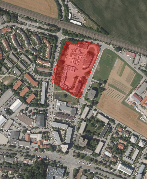 | Beschreibung / besondere Merkmale | Das Grundstück befindet sich im Eigentum der Gemeinde und wird derzeit an verschiedene Unternehmen vermietet sowie von kommunalen Einrichtungen genutzt. Es wird von der Gemeinde als gewerblicher Entwicklungsbereich eingestuft (siehe Gewerbeentwicklungskonzept). Das Grundstück ist bebaut und muss bei einer Neuentwicklung von Bebauung freigemacht werden. Es liegen Altlasten-, Schadstoff- und Immissionsgutachten vor. |