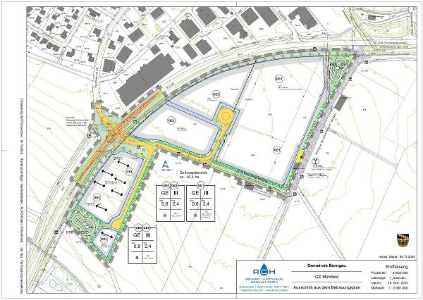 | Beschreibung / besondere Merkmale | Zur Verfügung stehen die Parzellen im Bereich GE 4 + GE 5. Somit werden insgesamt 15.905 m² Fläche mit Baurecht veräußert. Die Parzellierung kann im Bereich GE 4 noch angepasst werden. Der Baubeginn der Erschließungsarbeiten ist für Sommer 2026 geplant. Die geplante Fertigstellung für 2027. Das Gewerbegebiet überzeugt durch seine sehr gute Verkehrsanbindung, direkte Lage an der Staatsstraße 2238, optimale Verbindung zwischen Freystadt und Neumarkt i.d.OPf und schnelle Erreichbarkeit der A9, A3 und B8. Ausschlüsse von baulicher Nutzung: • Wohnung / Betriebsleiterwohnungen • Einzelhandelsbetriebe mit Verkaufsflächen über 800m² • Vergnügungsstätten Der rechtskräftige Bebauungsplan ist auf der Homepage der Gemeinde Berngau einsehbar. Für weitere Informationen zum Verkauf oder zur Bebauung stehen wir Ihnen gerne zur Verfügung. Bei Fragen zum Verkauf wenden Sie sich bitte telefonisch an 09181 2912-300 oder per E-Mail an berngau@vg-neumarkt.de Für bautechnische Fragen steht Ihnen unser Bauamt gerne zur Verfügung: telefonisch unter 09181 2912-904 oder per E-Mail an bauamt@vg-neumarkt.de |