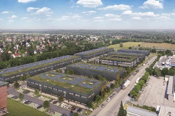| Beschreibung / besondere Merkmale | Mit dem UnternehmerPark München entsteht ein moderner Campus mit Flächen für Produktion und Lager, sowie Forschung & Entwicklung. Der zukünftige Campus bietet auf rd. 32.250 m² Raum für die unterschiedlichsten Branchen und Nutzungsarten. Die ebenerdigen Hallen mit eingezogenen Büroeinheiten im Obergeschoss können ab 780m² (Halle/EG) bzw. 210m² (Büro/Mezzanin) geteilt oder flexibel kombiniert werden. Baubeginn war im Juli 2024, der erste Bauabschnitt mit rd. 12.770 m² umfasst die Gebäude 1, 2 und 3 und wird in Q4/2025 fertiggestellt. Das Areal ist geprägt durch einen hohen Anteil an erneuerbarer Energie. Für die Wärmeversorgung der Gebäude wird das Grundwasser als regenerativer Energieträger genutzt. Auf den Neubauten werden großzügige, artenvielfältige Dachbegrünungen geschaffen, des weiteren werden die Dächer mit Photovoltaikanlagen ausgestattet und es entsteht eine Infrastruktur für E-Mobilität. Achsraster: 6,0 x 6,0 m bzw. 6,0 x 5,0 m und in einer Größe von 22 x 24 m stützenfrei Lichte Hallenhöhe: ca. 8,0 m UK-Binder und ca. 9,5 m UK-Rohdecke, UK-Mezzanin ca. 5,23 m Traglasten: Halle EG ca. 50 KN/m², Büro OG ca. 5 KN/m² Ebenerdige Andienung über Tore mit einer lichten Breite 4,00 m und Höhe 4,50 m Natürliche Helligkeit durch Glasoberlichter in den Hallen. |
