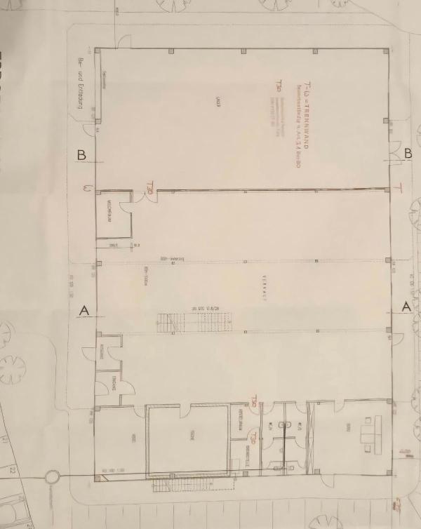 | Beschreibung / besondere Merkmale | Die Halle besteht aus einer Nutzfläche im EG von ca. 600qm, einem Hochregallager von ca. 300qm, sowie ein OG von ca. 600qm. Das Gebäude kann als Teilfläche oder Ganzes gemietet werden. Es gibt zwei Rolltore sowie eine elektronische Eingangstüre. |