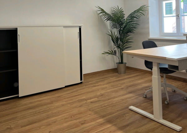 | Beschreibung / besondere Merkmale | Wir bieten Ihnen neu renovierte, moderne, komplett möblierte Büro- und Arbeitsplätze. Alle Räumlichkeiten sind ausgestattet mit höhenverstellbaren Schreibtischen, Schränken sowie einer Garderobe. Jede Mietpartei hat jeweils ein eigenes abschließbares Büro, welche sofort bezugsfertig sind: